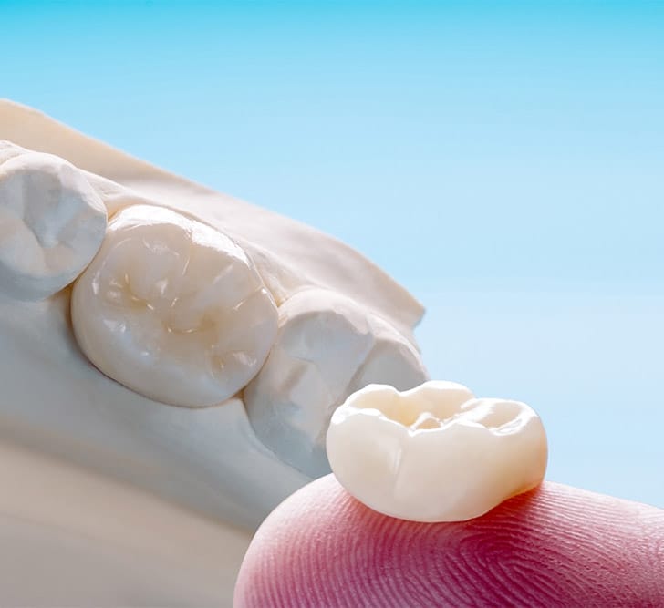 Dental crowns cover and protect damaged teeth. We use crowns when a tooth has been weakened by decay, cracks, or large fillings. A crown restores its natural shape and secures its place in your bite. This treatment protects your long-term dental health and helps your smile look more even.